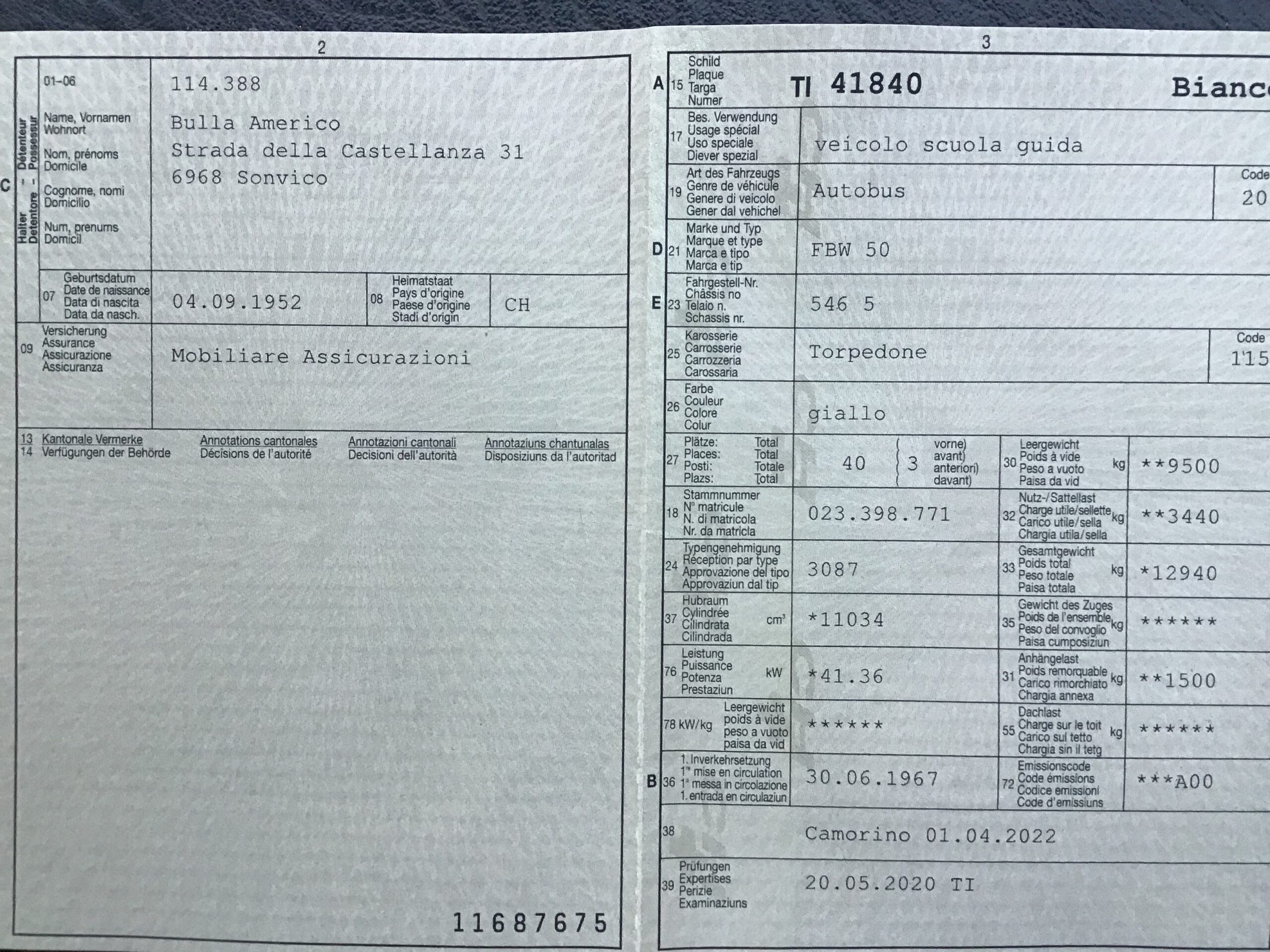 | Gesamtgewicht: | 12’940 kg |